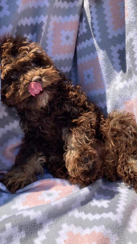 This is Tanner Chocolate and Tan male Cockapoo born July 20th 2025.